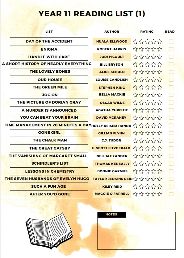 | Silent Reading | Thursday | 12:25 – 12:55pm |