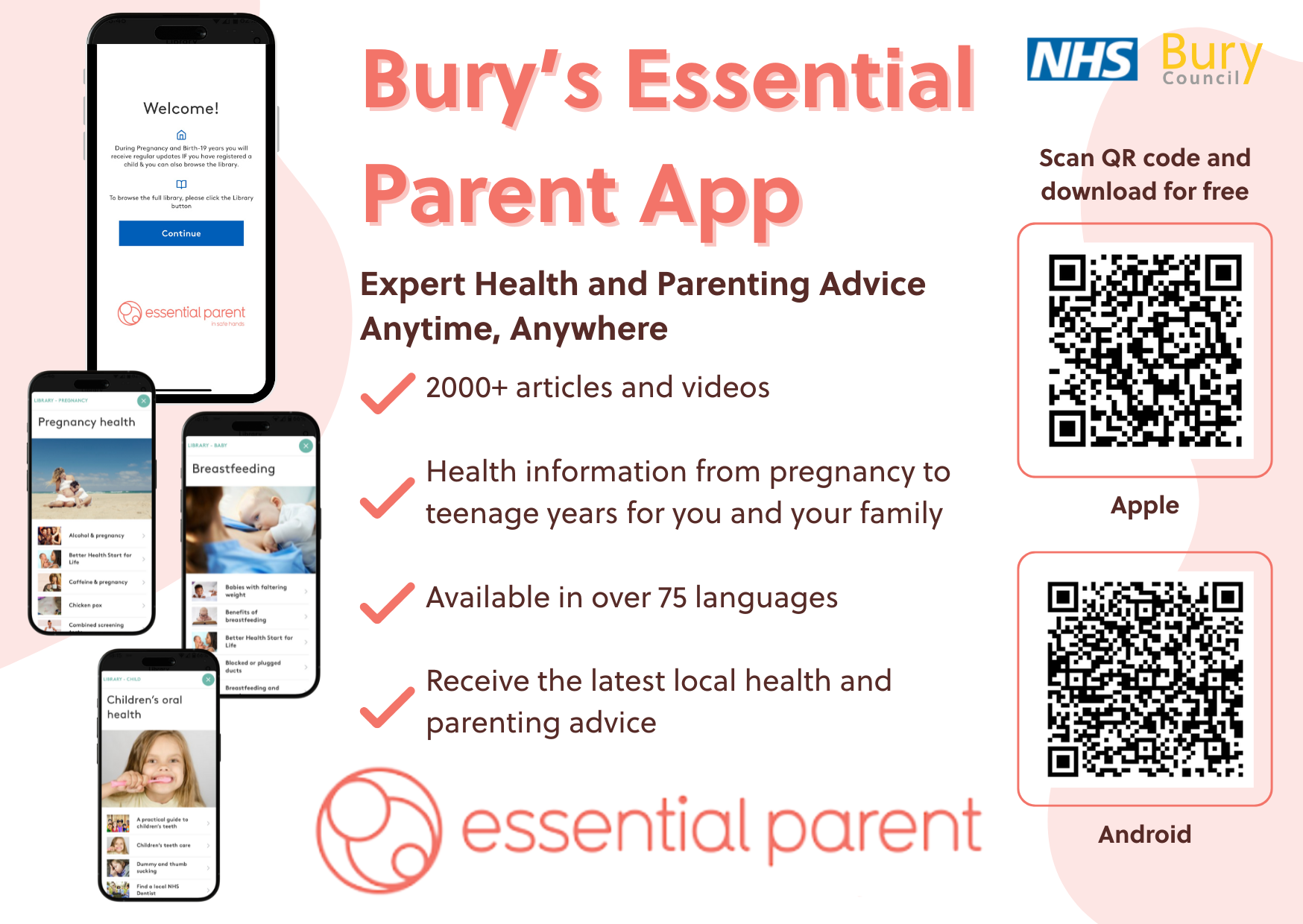 Supporting families from pregnancy through to the teenage years, the Essential Parent App offers trusted guidance, expert advice and local information tailored specifically for Bury.